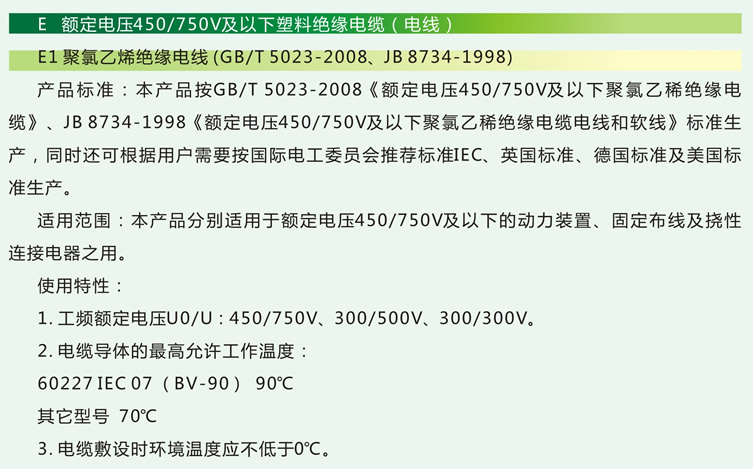 1聚氯乙烯絕緣電線(GB/T5023-2008、JB8734-1998